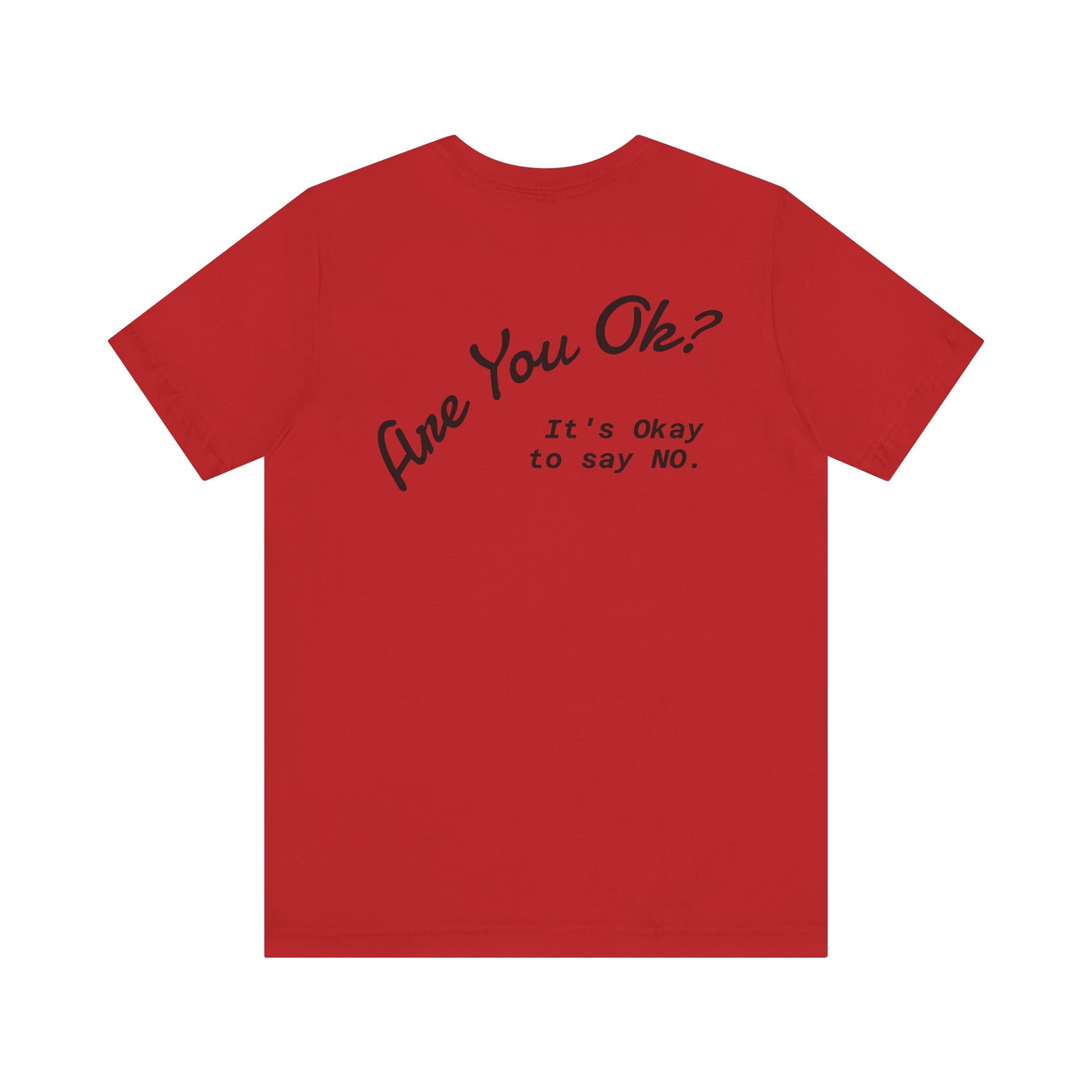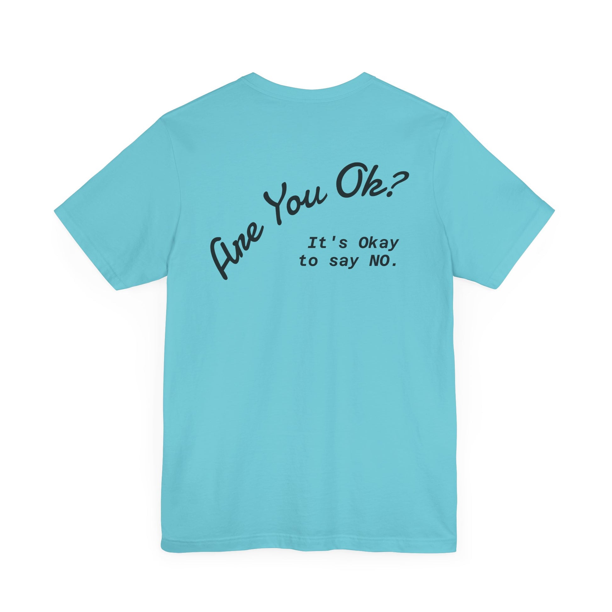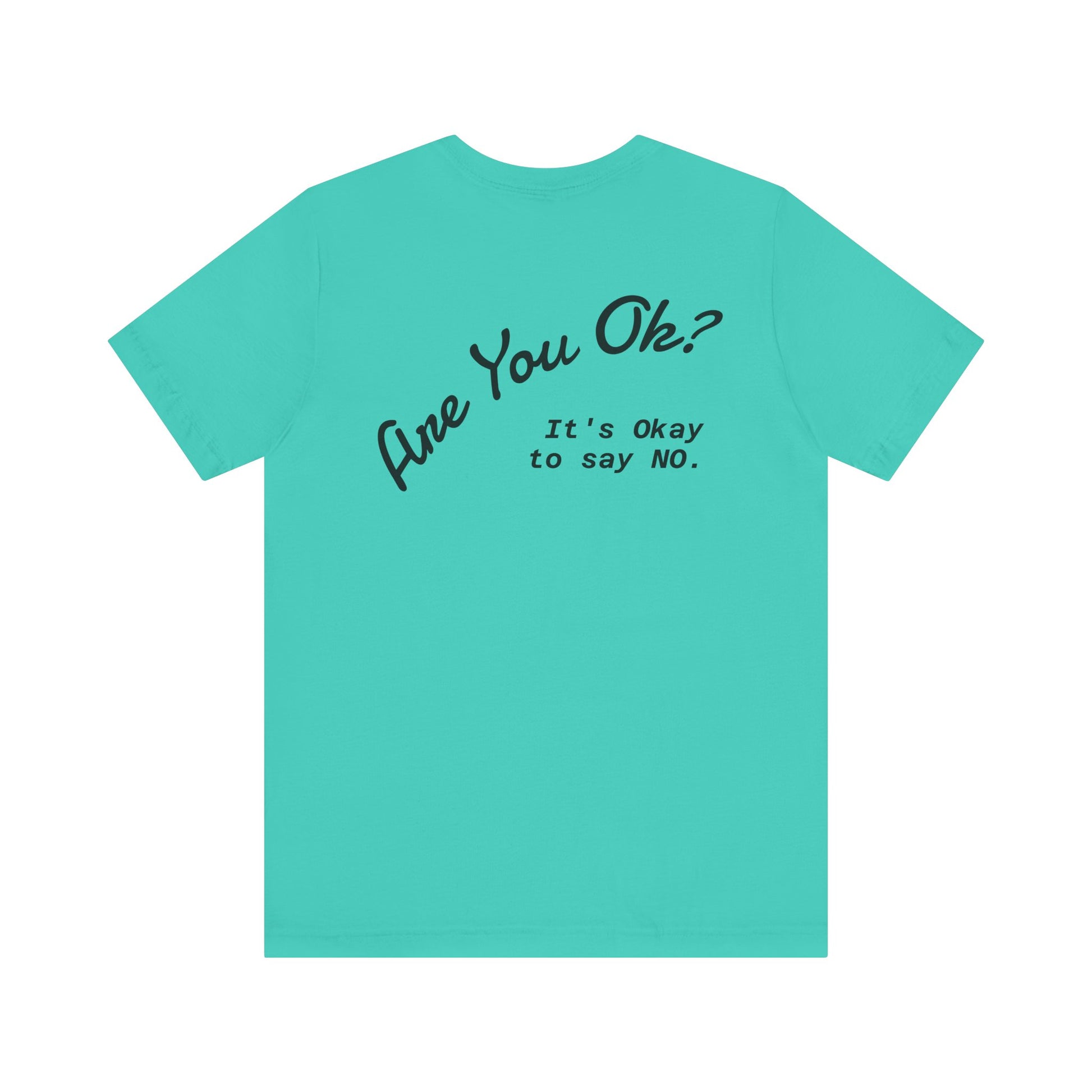 A comfortable and stylish tee with a 'Checking in tee are you okay' design. Perfect for casual wear and lounging around. Ideal for adults looking for a relaxed and trendy piece of clothing. Relevant for mental health awareness days, casual Fridays, and everyday wear.
