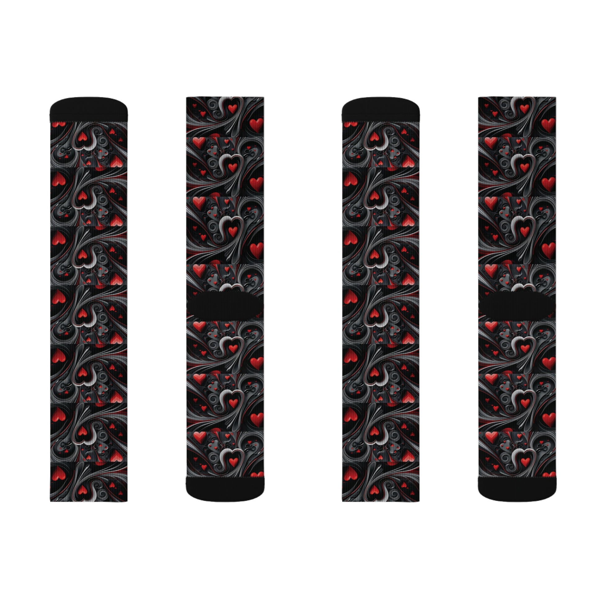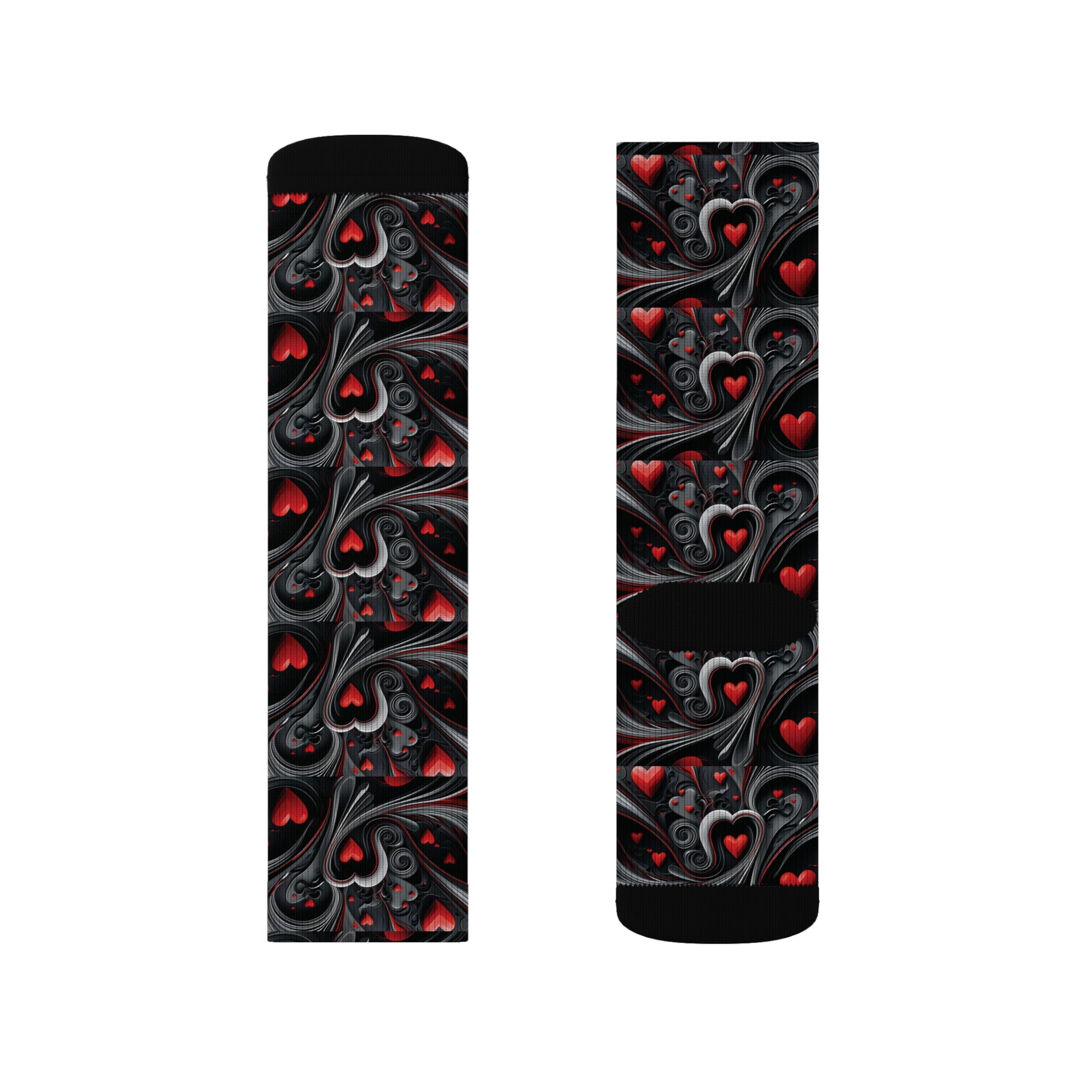 Heart of heart socks with super soft fleece lining for warmth and comfort. Perfect for anyone looking to add a touch of love to their outfit. Ideal for Valentine's Day, anniversaries, or simply as a thoughtful gift for a loved one.