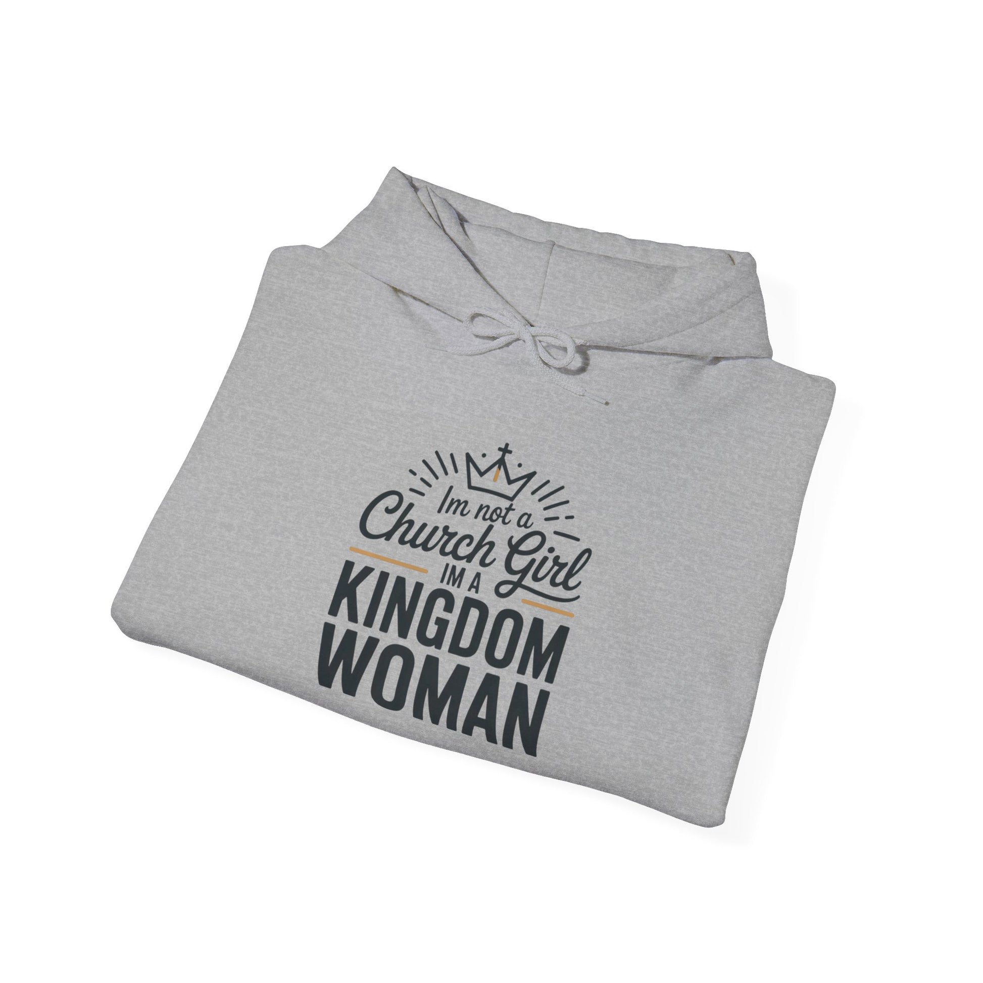 A soft, cozy hoodie that speaks to faith-forward women who live intentionally. The clean white fleece carries a bold, minimalist chest design reading “I’m not a Church Girl I’m a Kingdom Woman,” a statement that feels both humble and empowered. Wear it to Bible study, community outreach, or quiet mornings with coffee—the roomy kangaroo pocket and double-layer hood bring everyday comfort while the sturdy cotton-poly blend holds up to frequent wear and washes. Subtle details like a color-matched drawcord, tear-away label, and eco-conscious fabric choices make this hoodie feel thoughtful from the inside out. It’s a comfortable layer that matches quiet conviction with everyday style.