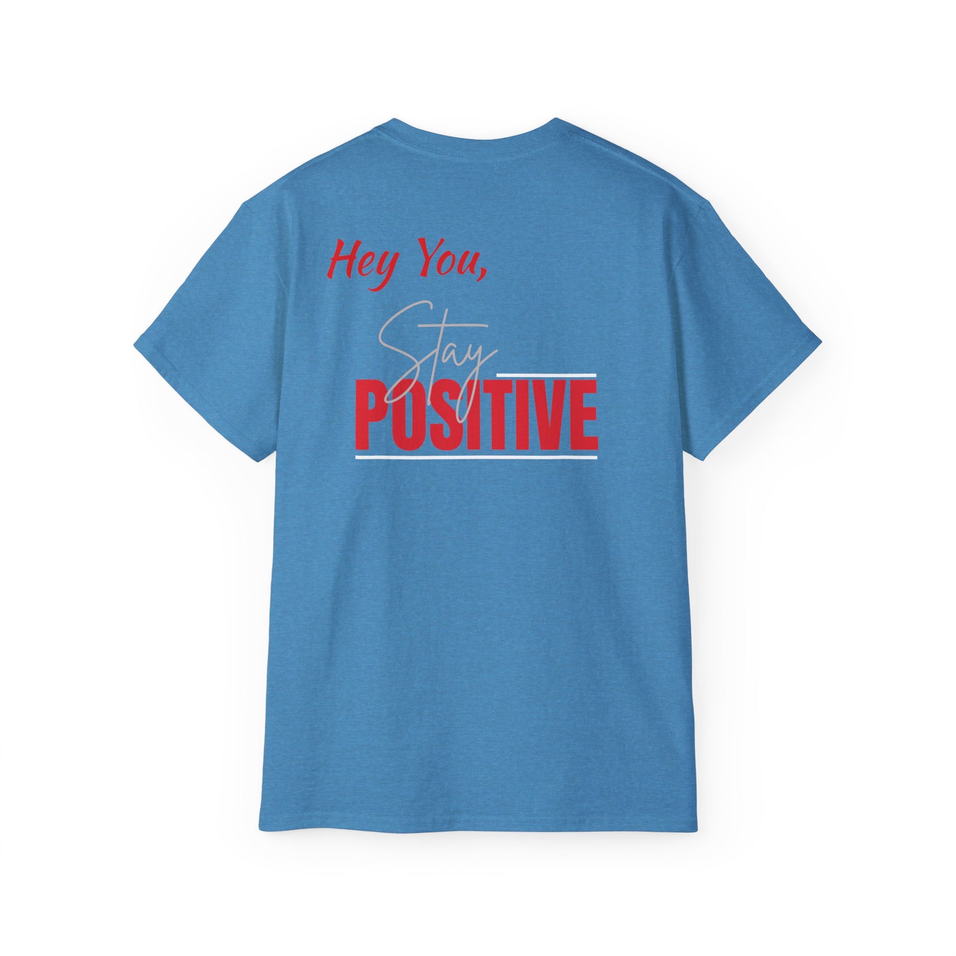 Stay positive tee shares a little hope of faith with strangers, speaking to the person behind you. It gives off a friendly and positive vibe, perfect for everyday wear or to lift someone's spirits. This unisex tee is suitable for adults and is an excellent choice for casual and semi-formal occasions. It is made with 100% US cotton, ensuring comfort, style, and ethical production practices.
