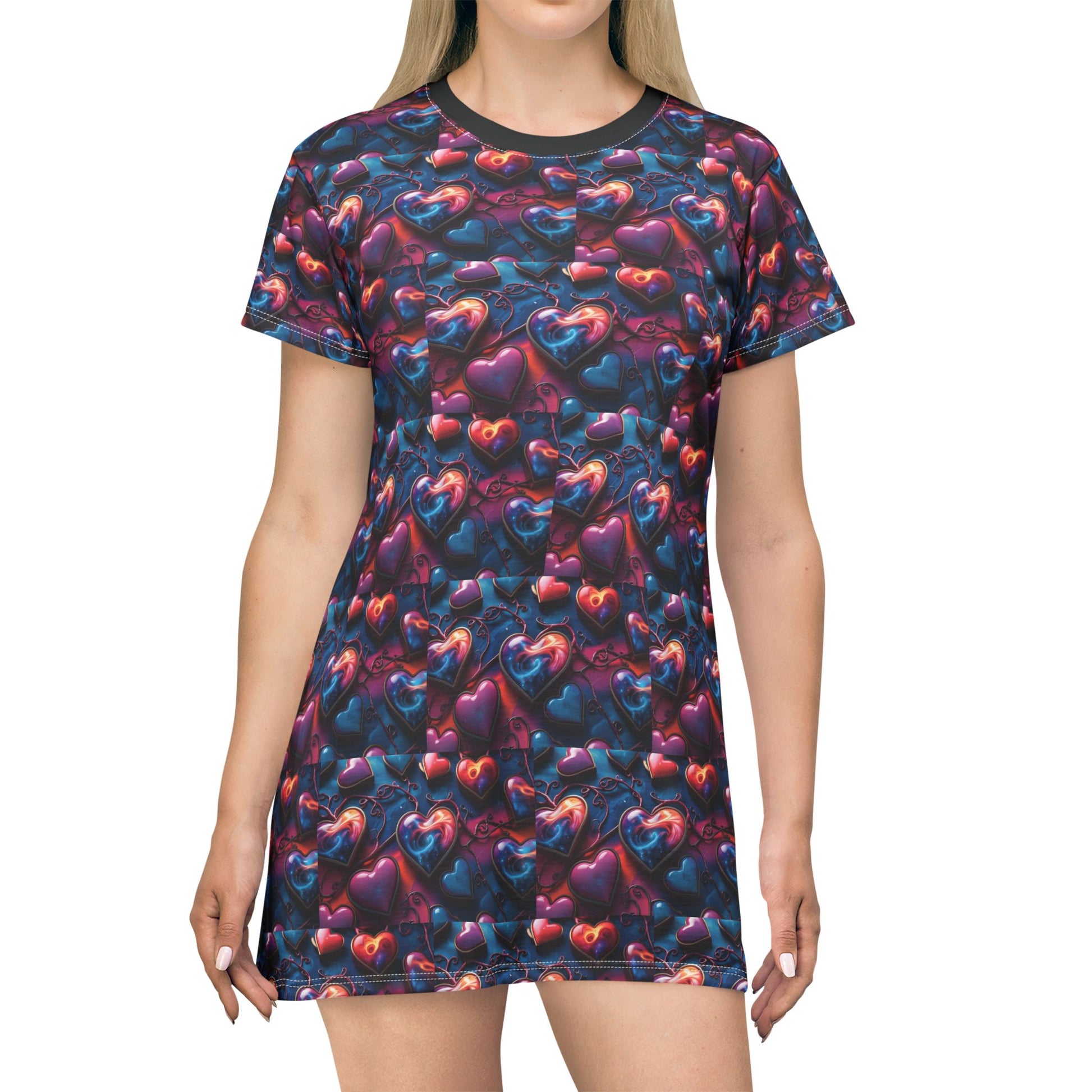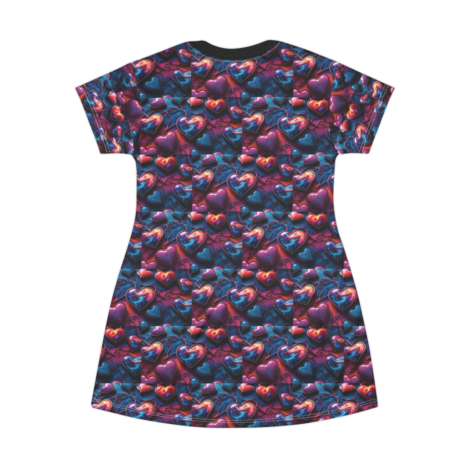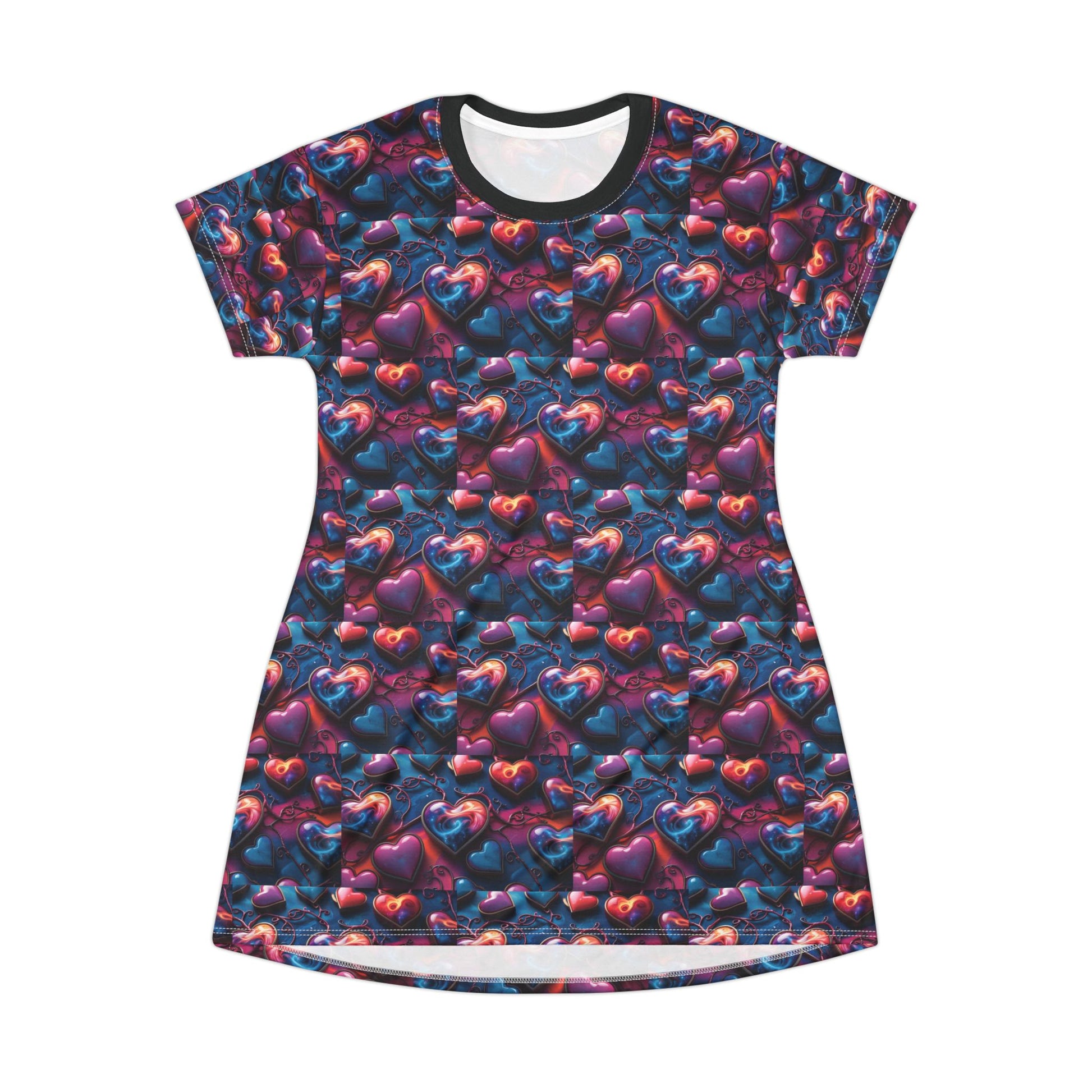 This vibrant hearts T-Shirt Dress is perfect for a casual and fun look. Made of 100% Polyester, it is strong, durable, and quick-drying. The side seams and self-fabric binding provide structural support and ensure the garment retains its shape. Tagless and lightweight, this dress runs true to size and is assembled in the USA.
